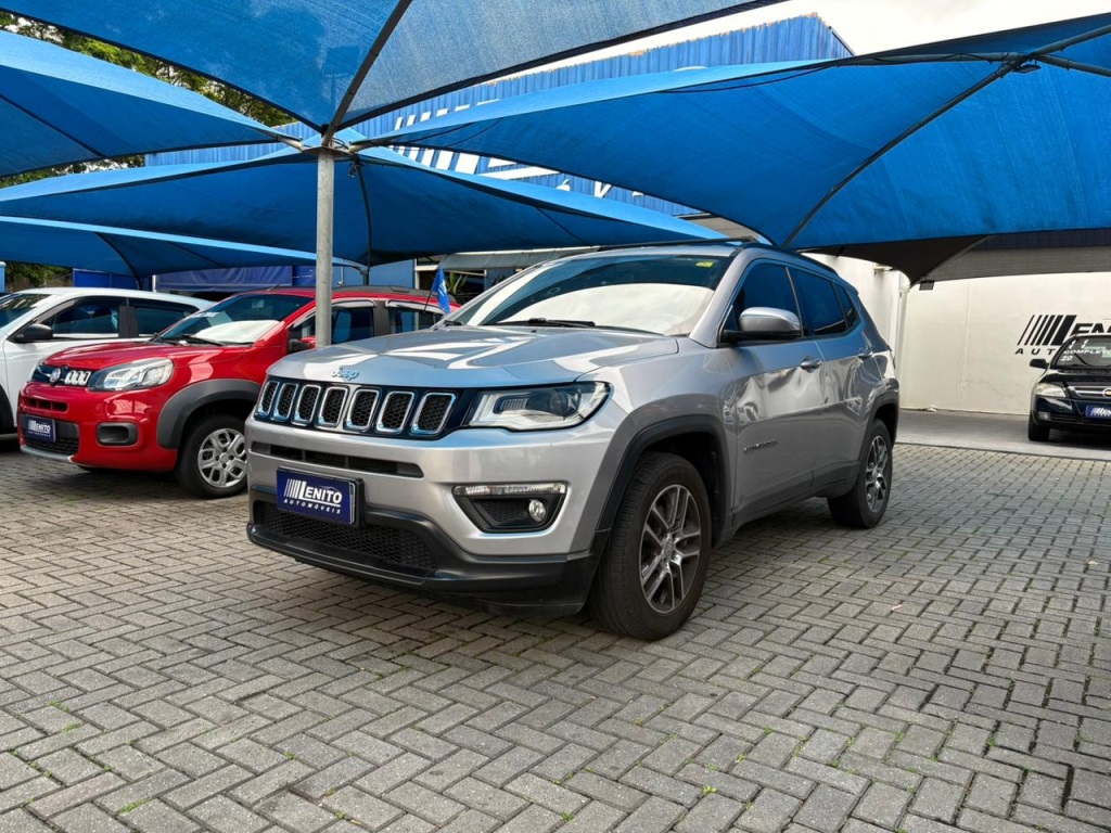 Jeep Compass Sport 2020 automático, SUV prata pronto para cidade, estrada e lazer. Pacote completo: direção elétrica, ar-condicionado, multimídia com CarPlay/Android Auto, câmera de ré, sensores de estacionamento, piloto automático, freio de estacionamento eletrônico, controles de estabilidade e tração, assistente de rampa, airbags, Isofix, faróis de neblina, DRL em LED, retrovisores e vidros elétricos, rodas de liga leve. Público: famílias e quem busca conforto. Forças: espaço, segurança, dirigibilidade. Oportunidade: leve este Compass hoje. | Cor: Prata