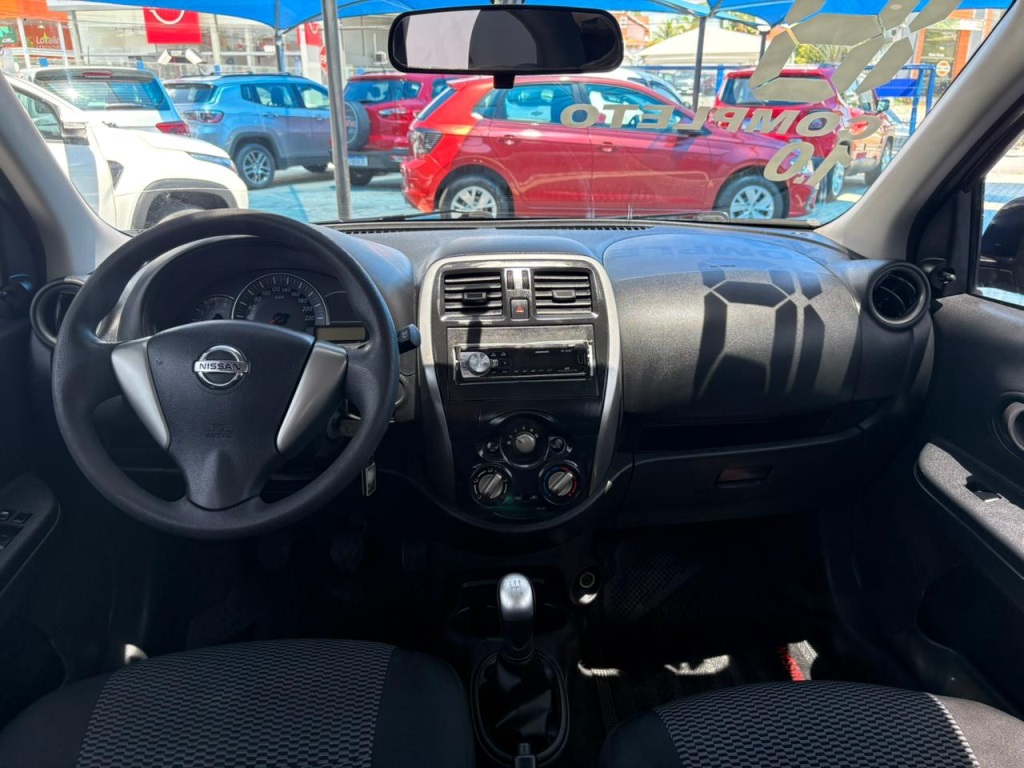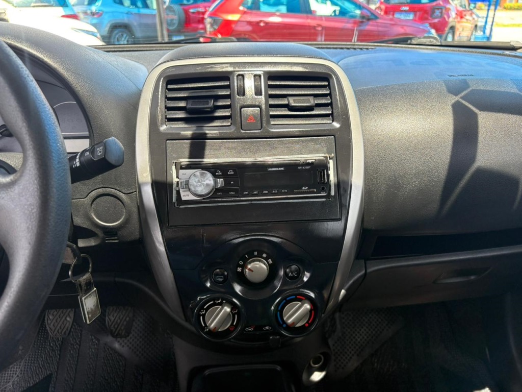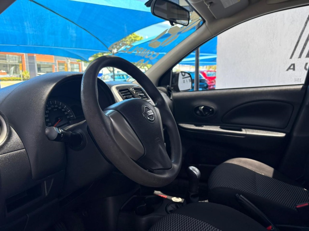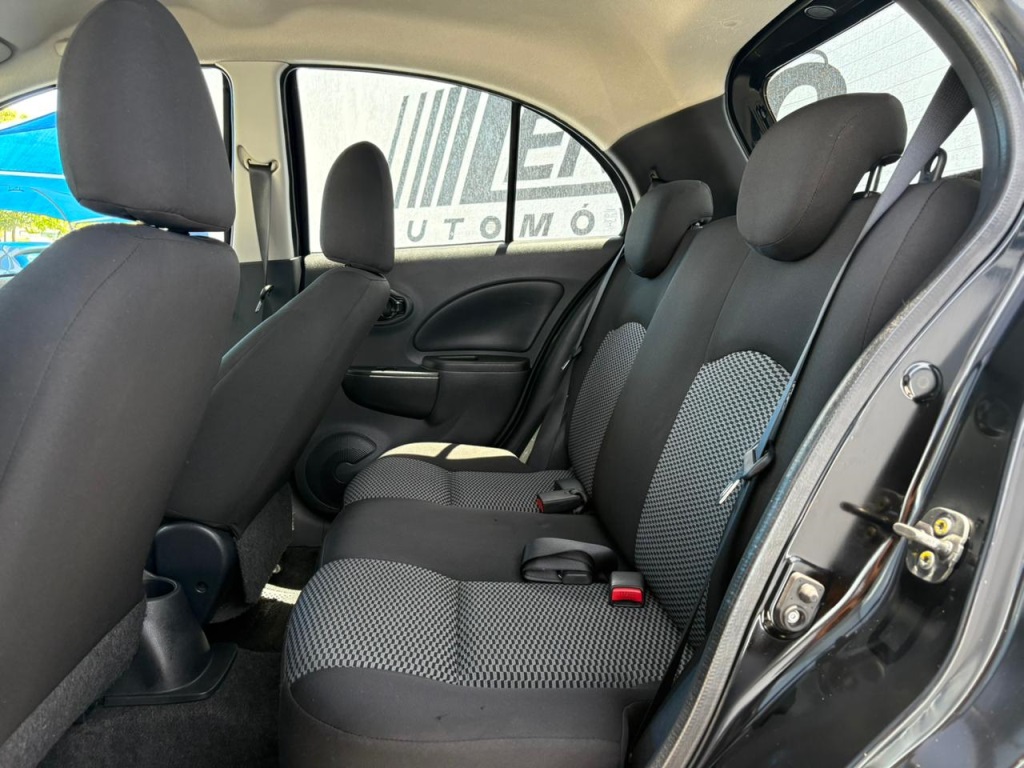 Nissan March S 2018 manual, hatch preto ágil para cidade, viagens curtas e apps, com pegada econômica e fácil de estacionar. Câmbio de 5 marchas, direção elétrica, ar-condicionado, vidros dianteiros e travas elétricas, som com Bluetooth/USB, volante multifuncional, computador de bordo, airbags, ABS e Isofix. Público ideal: primeiros motoristas, famílias compactas e quem busca baixo custo. Forças: consumo, praticidade, manutenção acessível. Oportunidade: garanta este March hoje. | Cor: Preto