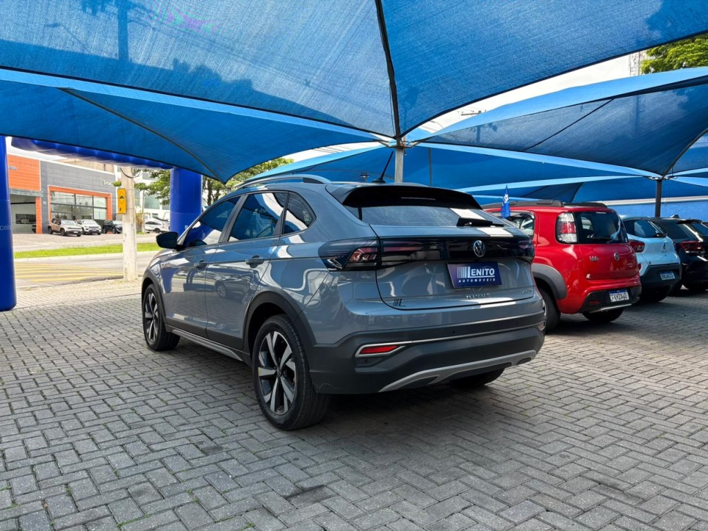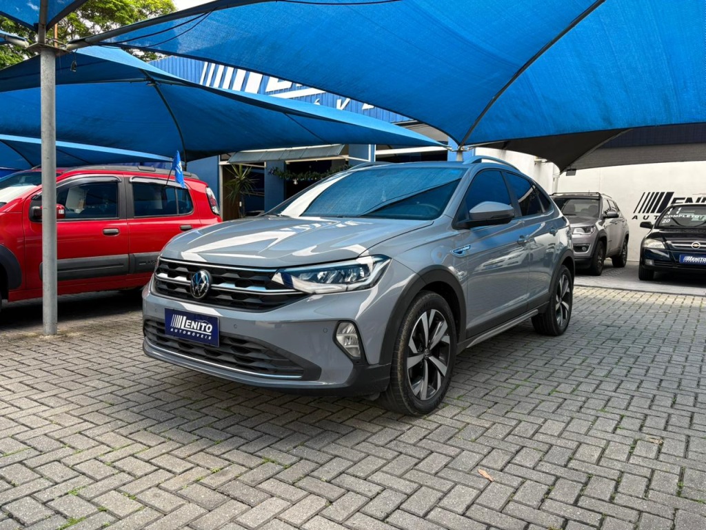 Nivus Highline TSI automático, SUV cinza ano 2022, moderno e pronto para cidade e estrada. Itens: direção elétrica, ar digital, VW Play com CarPlay/Android Auto, câmera de ré, sensores dianteiros e traseiros, piloto automático adaptativo, frenagem autônoma, chave presencial e partida por botão, faróis e DRL em LED, rodas de liga leve, retrovisores elétricos, bancos em couro, volante multifuncional, paddle-shift, controles de estabilidade e tração, assistente de rampa, Isofix e airbags. Público ideal: famílias e jovens conectados. Oportunidade: leve este Nivus agora. | Cor: Cinza.