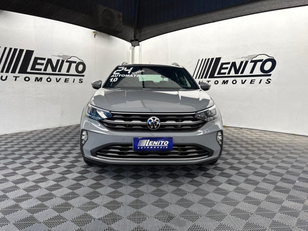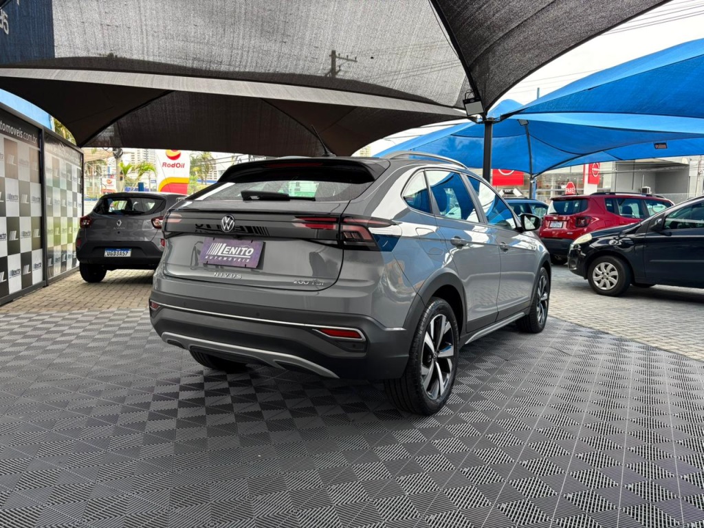 Volkswagen Nivus Highline 1.0 TSI ’24, SUV cinza com visual moderno e desempenho eficiente. Equipado com direção elétrica, ar-condicionado digital, VW Play c/ CarPlay/Android Auto, Bluetooth/USB, câmera de ré e sensores, ACC e AEB, piloto automático, chave presencial e partida por botão, carregador por indução, cockpit digital, faróis em LED, rodas de liga, controle de estabilidade e tração, assistente de rampa, Isofix. 5 lugares. Público: famílias e conectados. Pontos fortes: segurança, tecnologia e consumo. Oportunidade: garanta este Nivus hoje. | Cor: Cinza