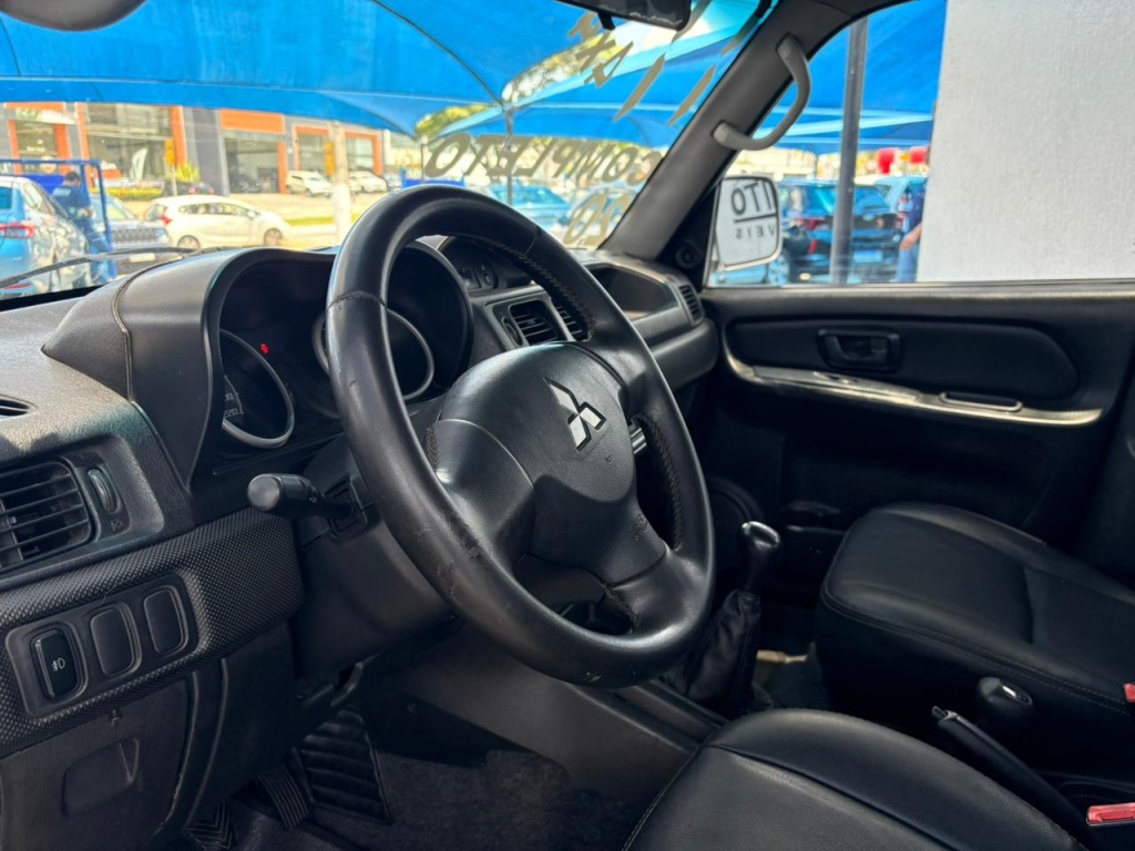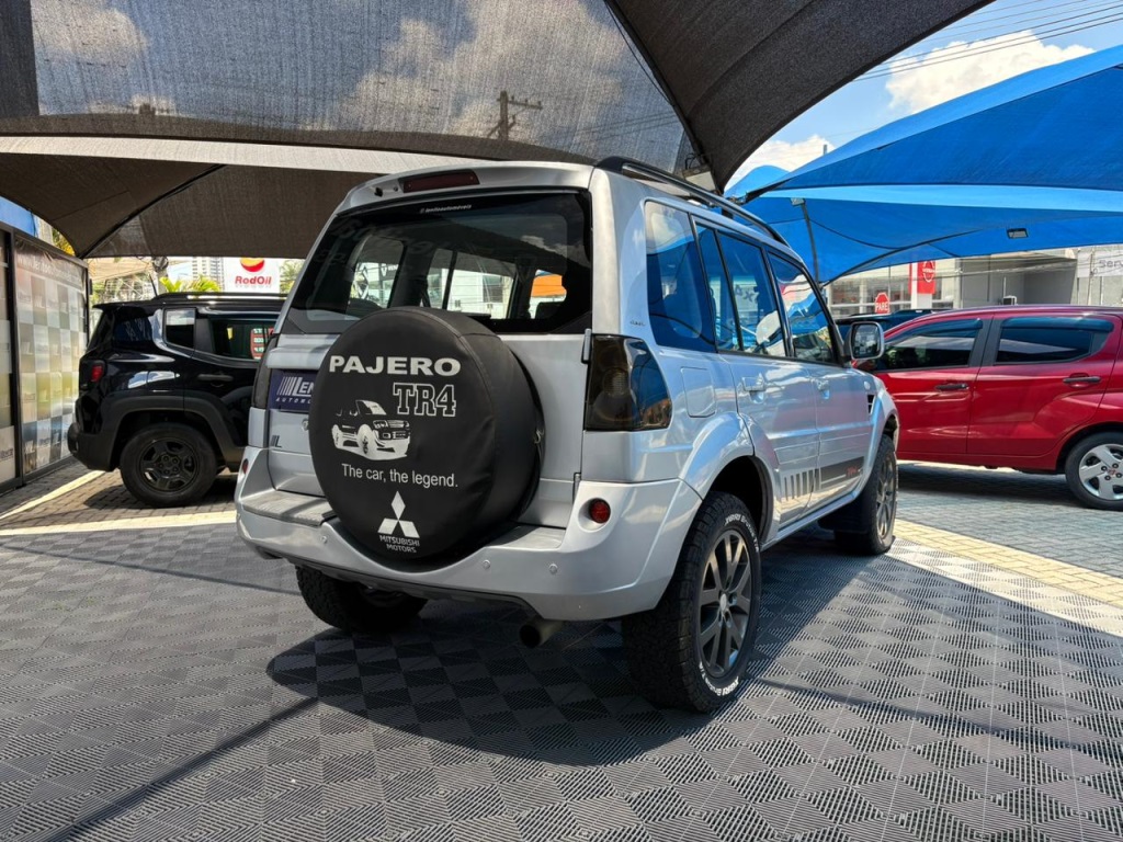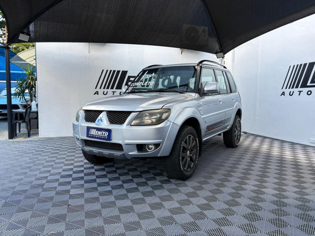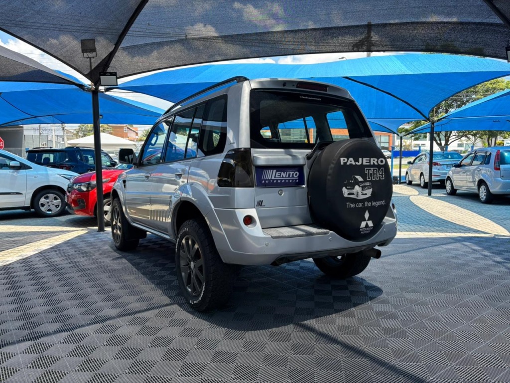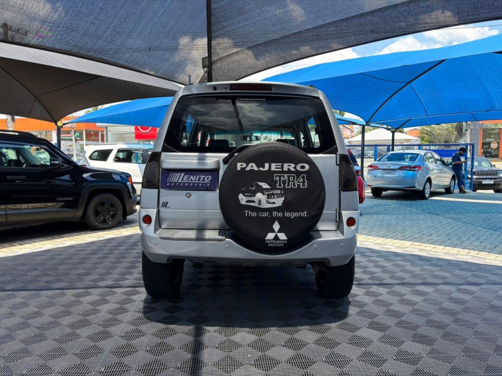 Mitsubishi Pajero TR4 manual 2011, SUV prata para cidade, estrada e trilhas com confiabilidade e presença. Equipado com direção hidráulica, ar-condicionado, vidros, travas e retrovisores elétricos, som com USB e auxiliar, computador de bordo, faróis de neblina, rodas de liga leve, rack de teto, limpador e desembaçador traseiros, ABS e airbags, além de tração integral com reduzida. Público: aventureiros e famílias. Forças: robustez, altura livre e revenda. Oportunidade: garanta este Pajero hoje. | Cor: Prata