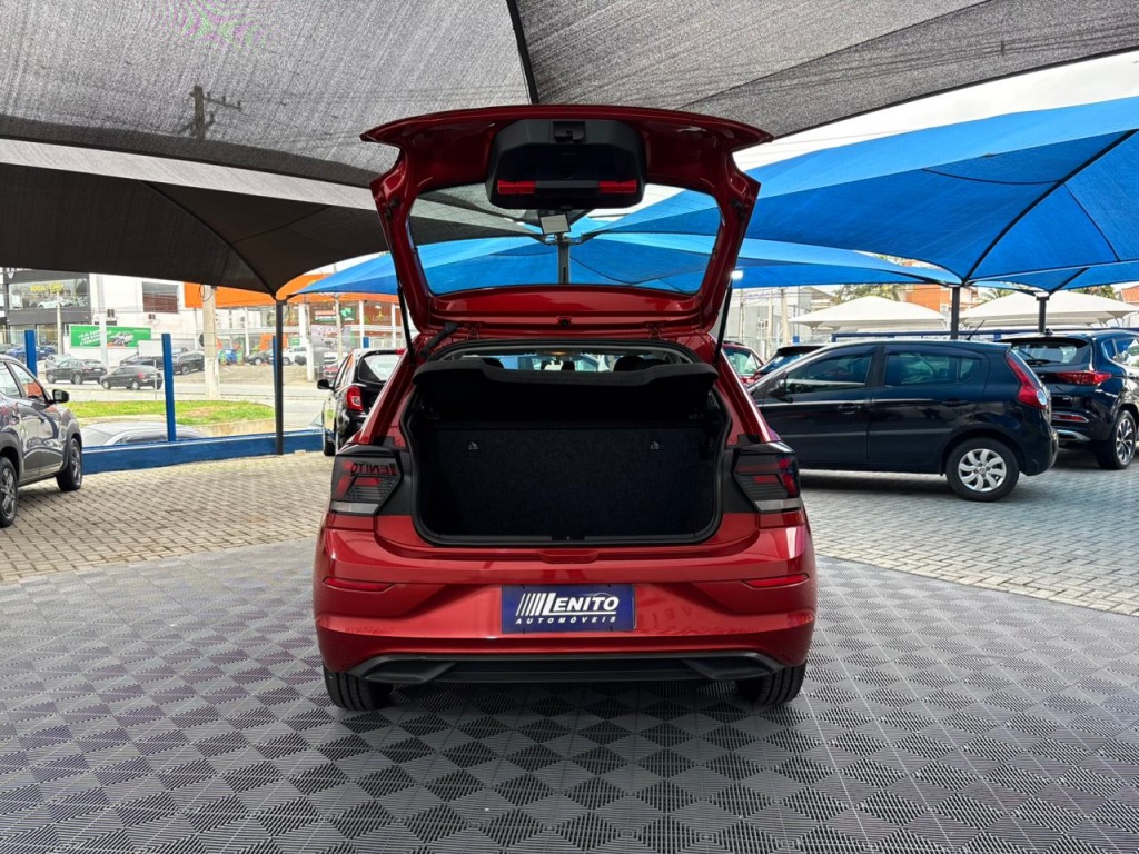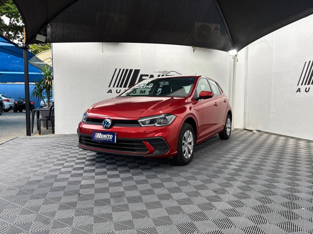 Volkswagen Polo MPI 2023, hatch vermelho com câmbio manual, perfeito para quem quer economia e agilidade na cidade sem abrir mão de segurança na estrada. Ar-condicionado, direção elétrica, vidros e travas elétricas, volante multifuncional, rádio Composition Touch com Android Auto/Apple CarPlay, banco do motorista com ajuste de altura e traseiro rebatível. ESC/ASR/EDS, HHC, frenagem pós-colisão, alerta de frenagem, monitoramento dos pneus, Isofix e airbags frontais/laterais. 5 lugares. Ideal para jovens, casais e uso diário com viagens no fim de semana. Oportunidade de compra: leve este Polo agora e garanta um hatch valente e fácil de revender! | Cor: Vermelho