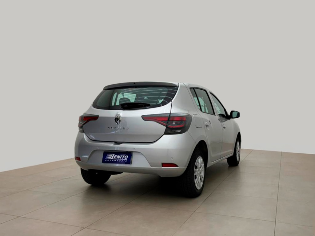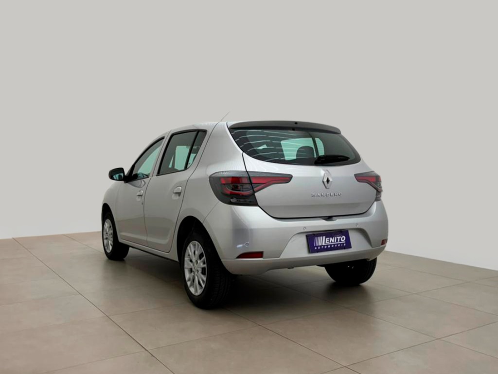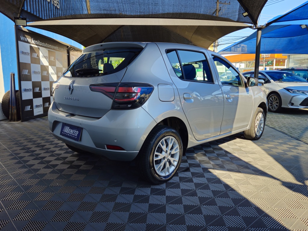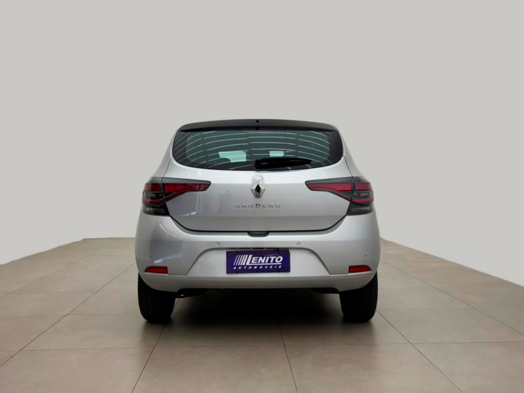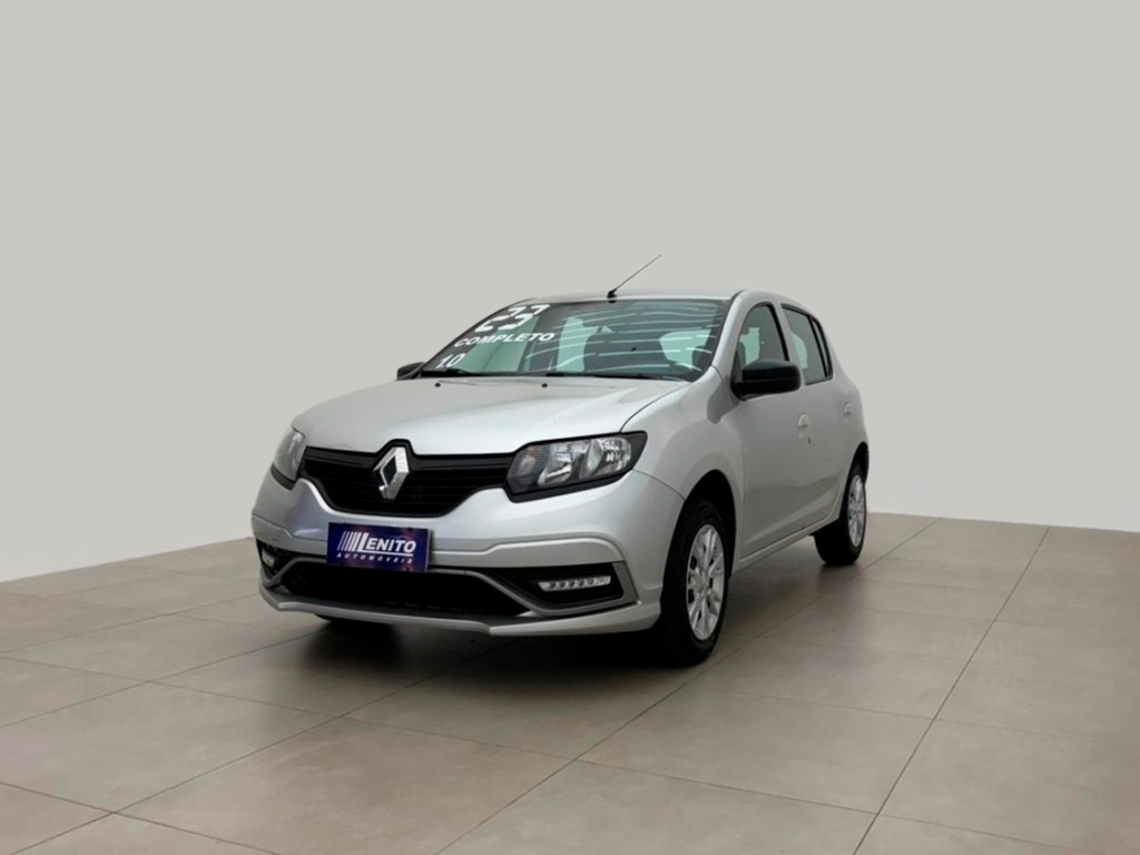 Renault Sandero S Edition manual 2023, hatch prata com visual esportivo para cidade, estrada e apps. Opcionais: direção elétrica, ar-condicionado, multimídia com CarPlay/Android Auto e Bluetooth, USB, sensores de estacionamento, volante multifuncional, piloto automático e limitador, vidros/travas/retrovisores elétricos, faróis de neblina, DRL em LED, controles de estabilidade e tração, assistente de rampa, Isofix, rodas de liga leve e acabamento escurecido. Público: jovens e famílias. Forças: consumo, espaço, conectividade. Oportunidade: leve este Sandero hoje. | Cor: Prata