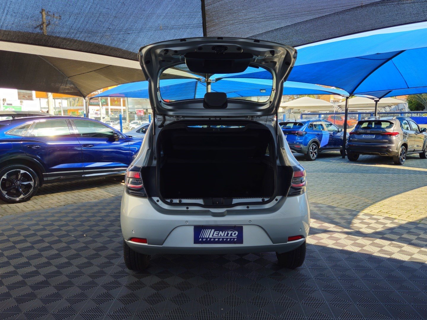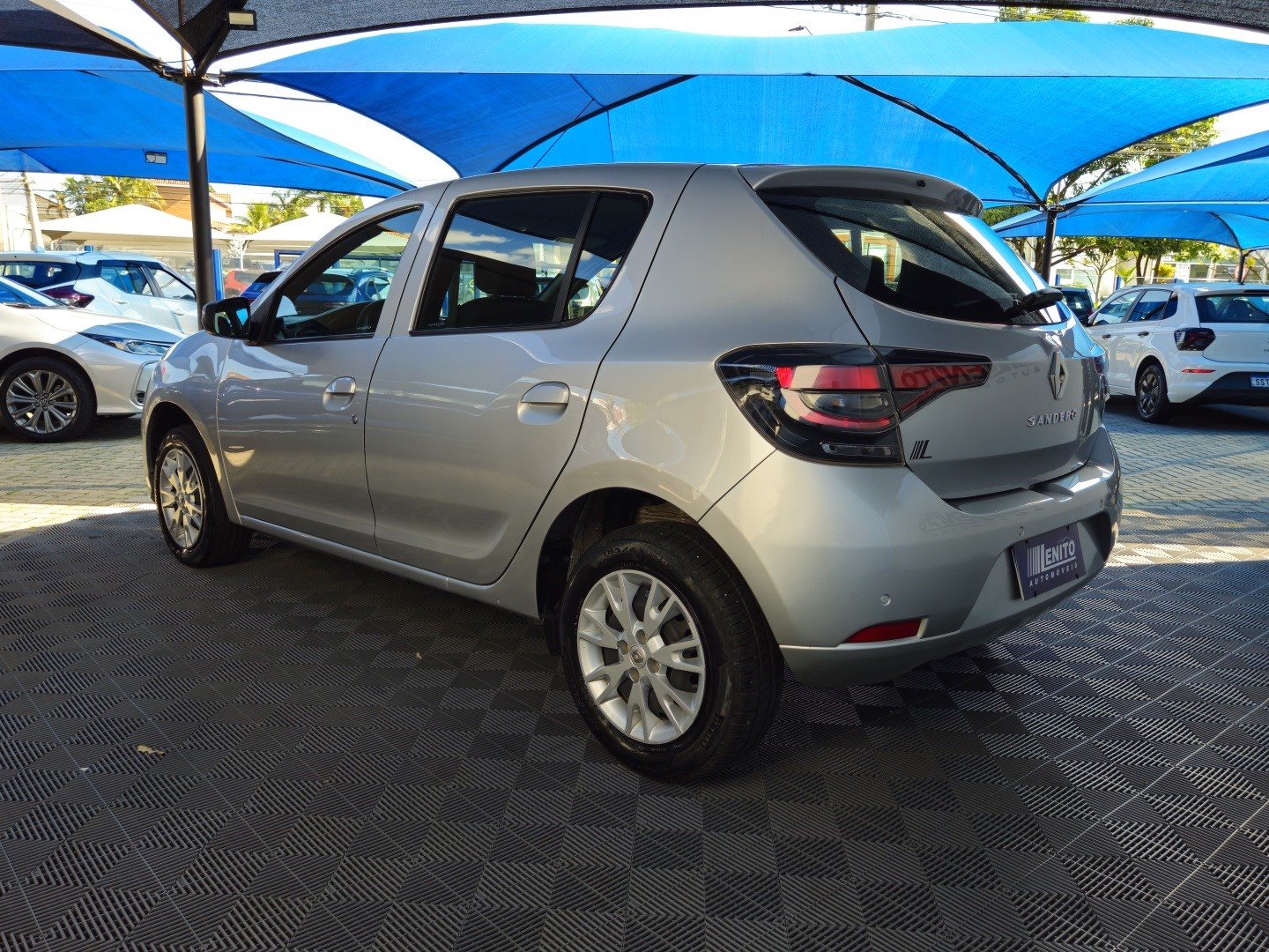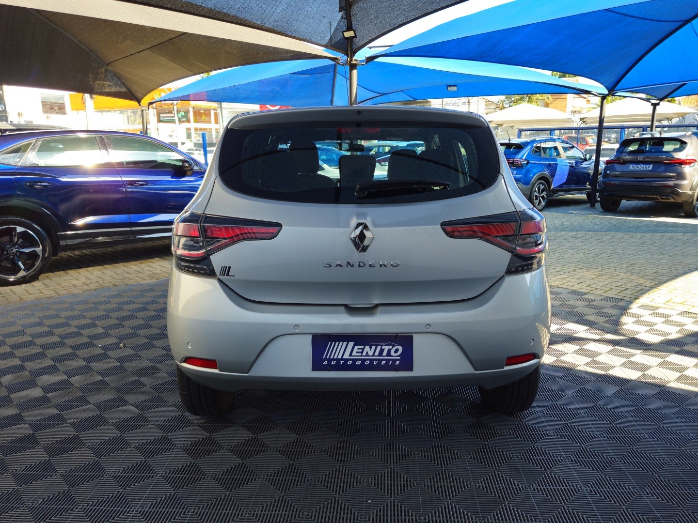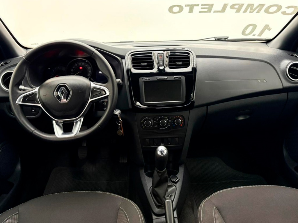 Renault Sandero S Edition manual 2023, hatch prata com visual esportivo para cidade, estrada e apps. Opcionais: direção elétrica, ar-condicionado, multimídia com CarPlay/Android Auto e Bluetooth, USB, sensores de estacionamento, volante multifuncional, piloto automático e limitador, vidros/travas/retrovisores elétricos, faróis de neblina, DRL em LED, controles de estabilidade e tração, assistente de rampa, Isofix, rodas de liga leve e acabamento escurecido. Público: jovens e famílias. Forças: consumo, espaço, conectividade. Oportunidade: leve este Sandero hoje. | Cor: Prata