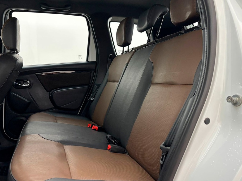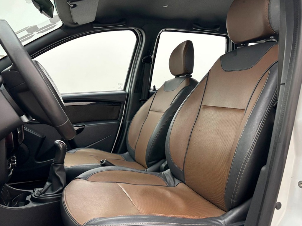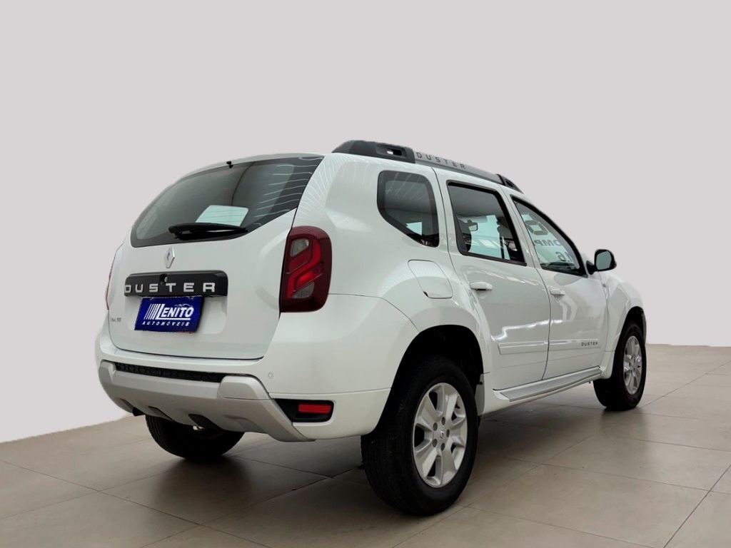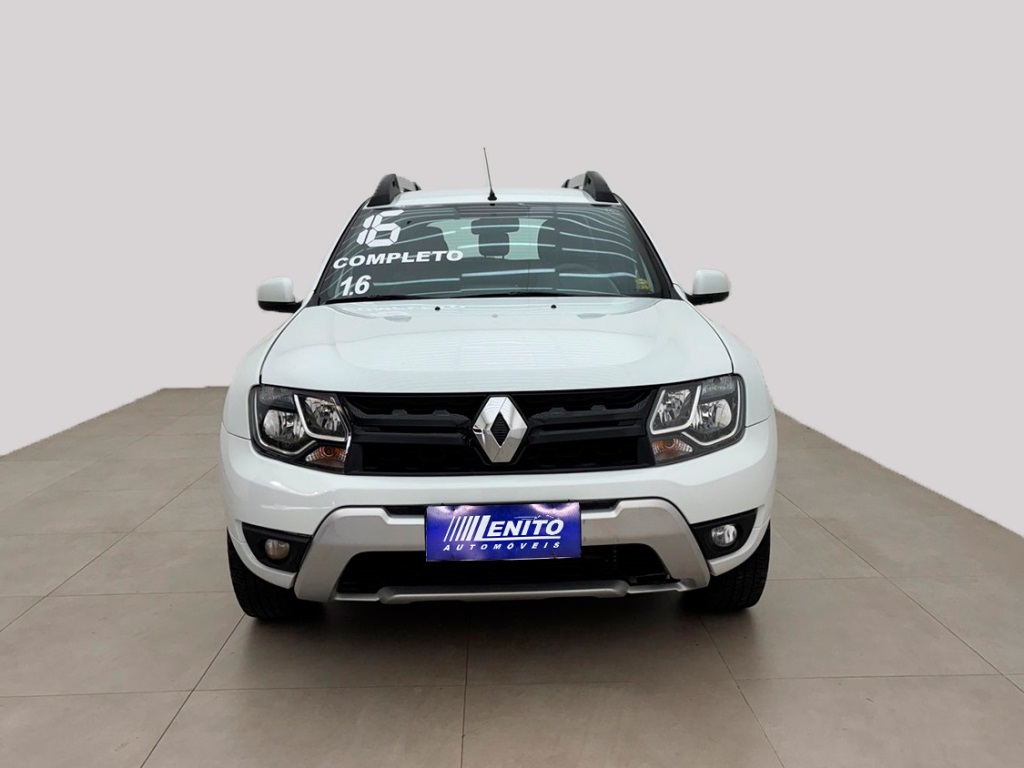 Renault Duster Dynamique branca 2016, flex, SUV robusta e espaçosa. Revisada, com ar-condicionado, direção hidráulica, vidros e travas elétricas, som com Bluetooth e USB, volante multifuncional, airbags, ABS, faróis de neblina, rack de teto e banco traseiro bipartido. Porta-malas amplo, ótimo para família, viagens e uso em app. Confortável na cidade, estável na estrada e pronta para estradas de terra leves. Garantia de 3 meses no contrato. Oportunidade imperdível: leve esta Duster!