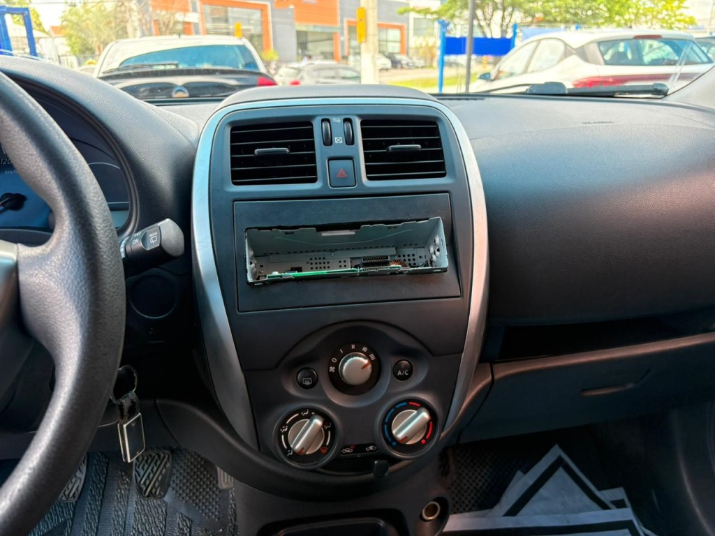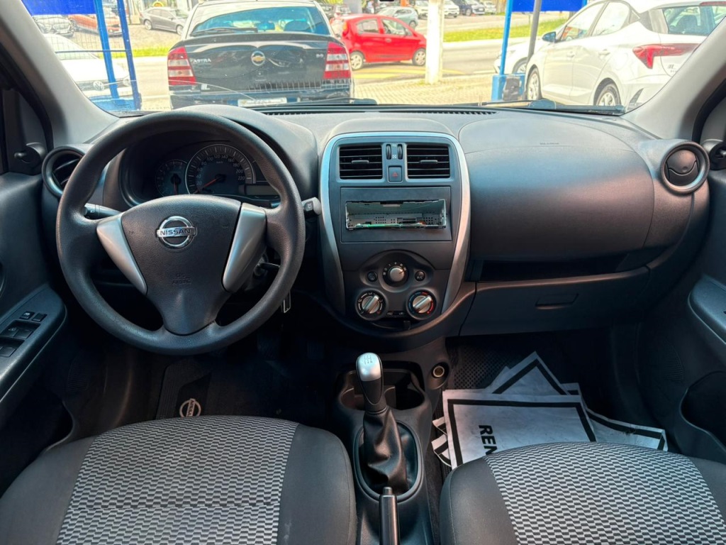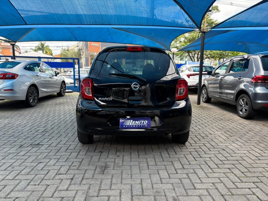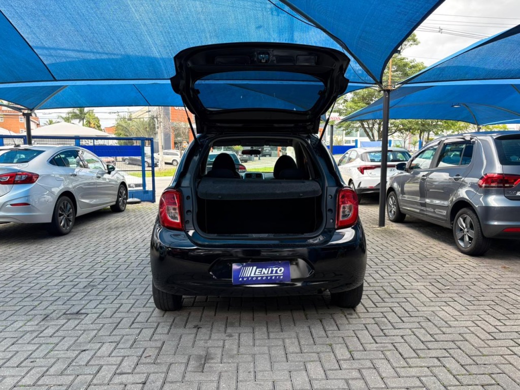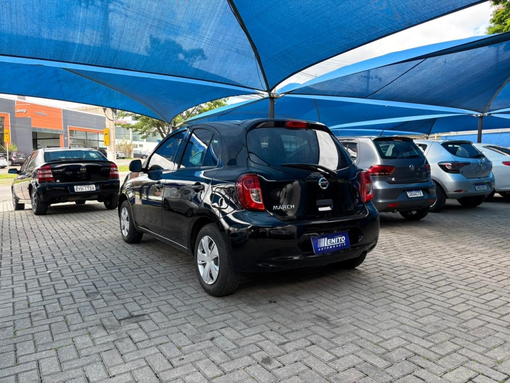 Nissan March S 2018 manual, hatch preto ágil para cidade, viagens curtas e apps, com pegada econômica e fácil de estacionar. Câmbio de 5 marchas, direção elétrica, ar-condicionado, vidros dianteiros e travas elétricas, som com Bluetooth/USB, volante multifuncional, computador de bordo, airbags, ABS e Isofix. Público ideal: primeiros motoristas, famílias compactas e quem busca baixo custo. Forças: consumo, praticidade, manutenção acessível. Oportunidade: garanta este March hoje. | Cor: Preto