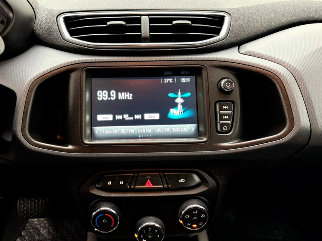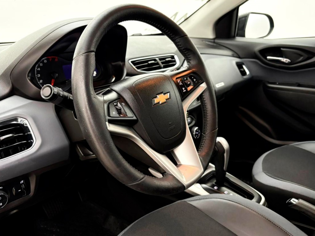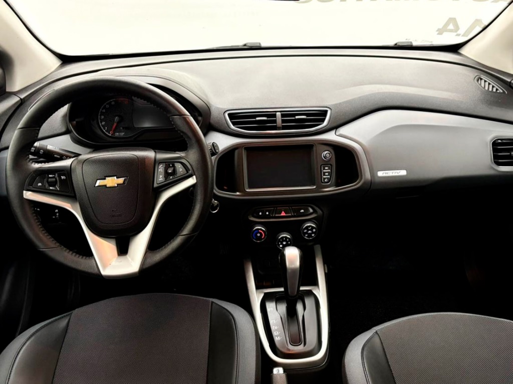 Onix Active automático hatch preto, ano 2019. Visual aventureiro, motor flex econômico, multimídia com espelhamento, direção elétrica, piloto automático, sensor de ré, câmera, faróis de neblina, rodas de liga e bom porta-malas; ótimo para a cidade, viagens curtas e fins de semana. Garantia de 3 meses no contrato. Garanta já este hatch versátil — oportunidade de compra perfeita para quem busca estilo e praticidade.