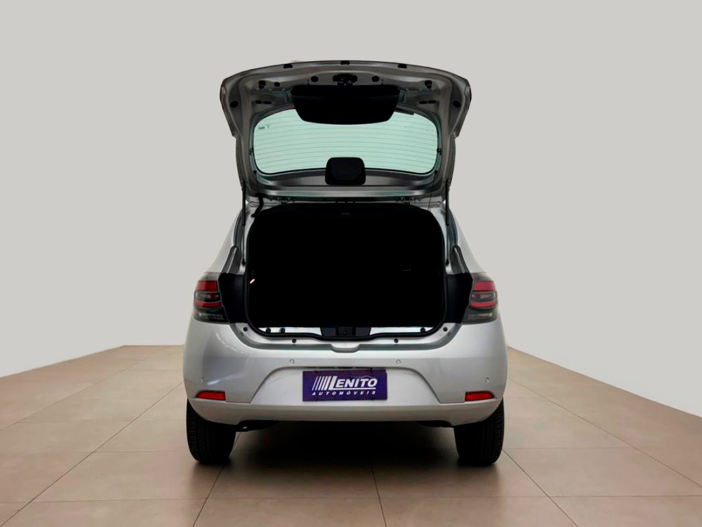 Renault Sandero S Edition manual 2023, hatch prata com visual esportivo para cidade, estrada e apps. Opcionais: direção elétrica, ar-condicionado, multimídia com CarPlay/Android Auto e Bluetooth, USB, sensores de estacionamento, volante multifuncional, piloto automático e limitador, vidros/travas/retrovisores elétricos, faróis de neblina, DRL em LED, controles de estabilidade e tração, assistente de rampa, Isofix, rodas de liga leve e acabamento escurecido. Público: jovens e famílias. Forças: consumo, espaço, conectividade. Oportunidade: leve este Sandero hoje. | Cor: Prata